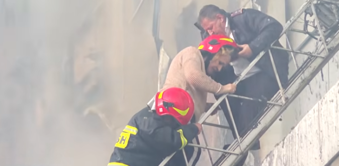 U cilësua si heroi i ngjarjes, pasi u pa teksa u ngjit nëpër shkallë fare pranë flakëve për t’i shpëtuar jetën një gruaje, të cilës i vuri në kokë kaskën e tij madje.